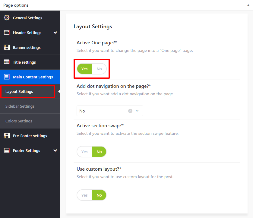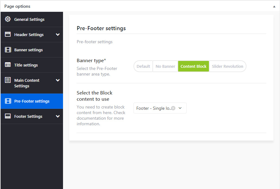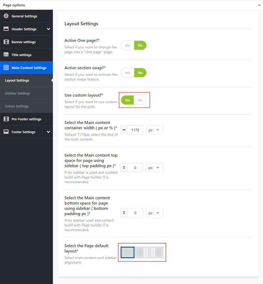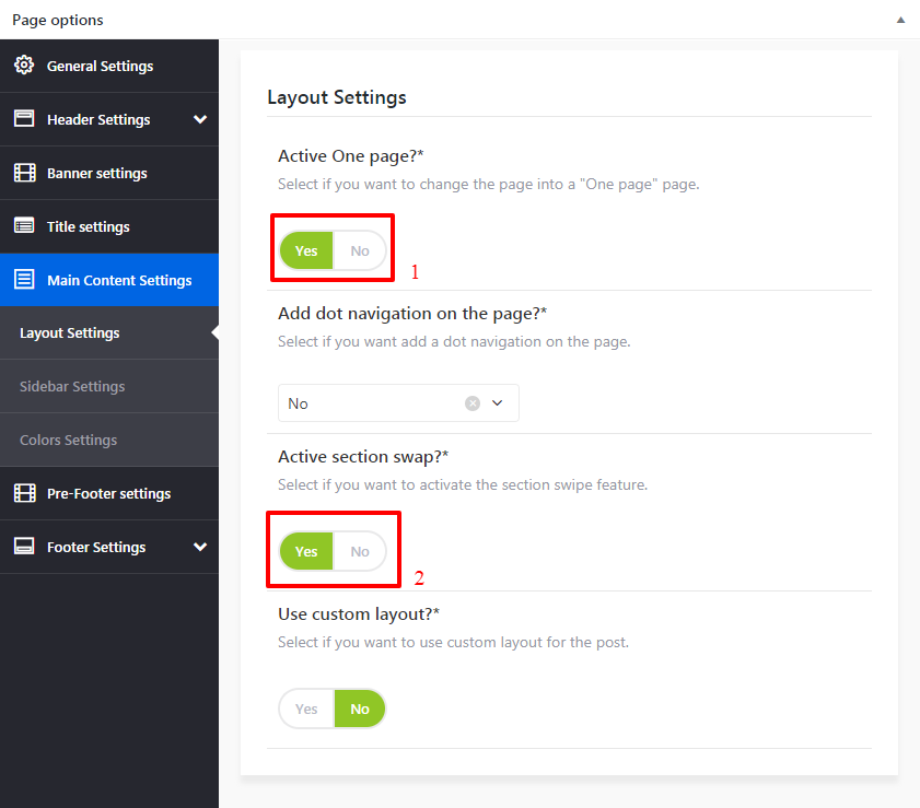 - Footer Settings: To modify the Footer main area and Footer Sub Area color