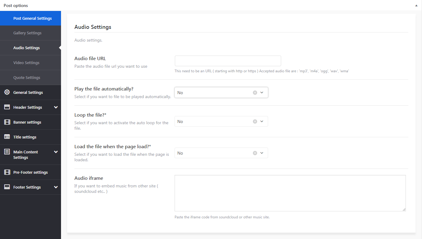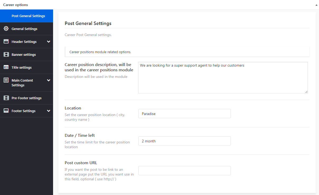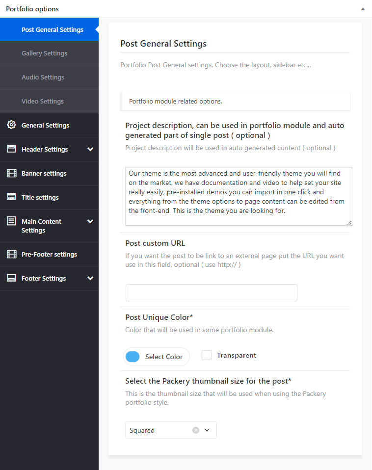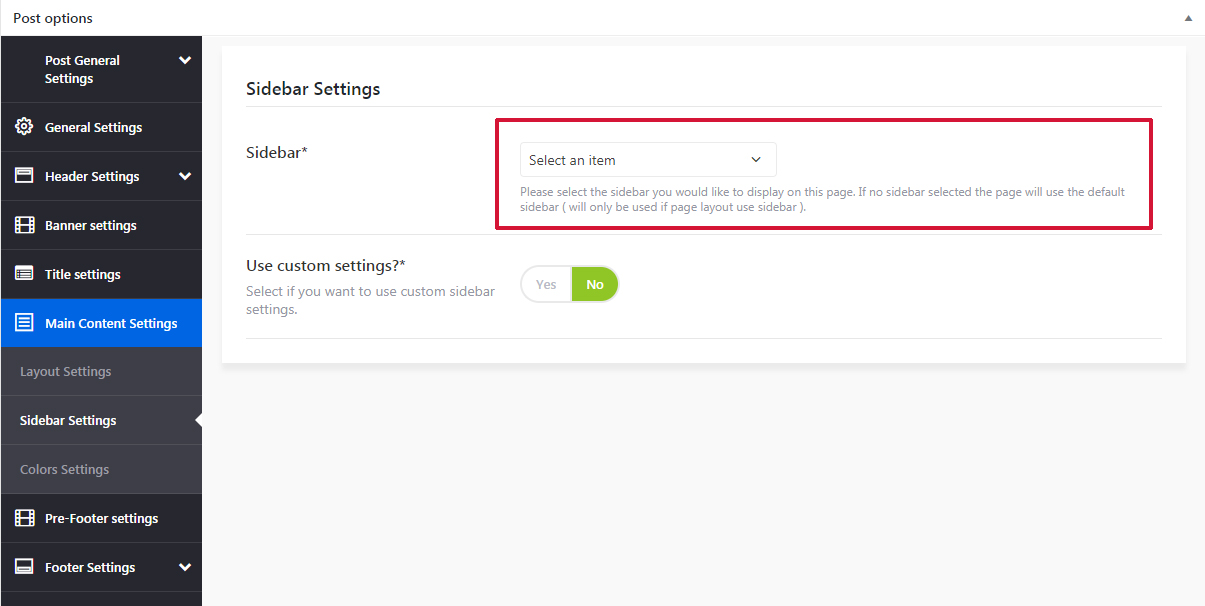 - Footer Settings: To modify the Footer main area and Footer Sub Area color