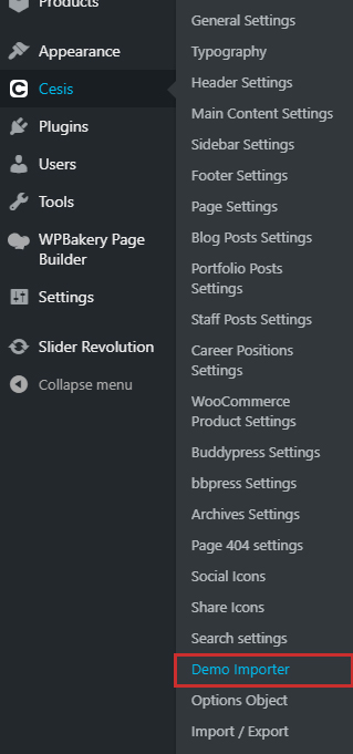 Step 1 - Log into your WordPress dashboard after installing Cesis Theme.