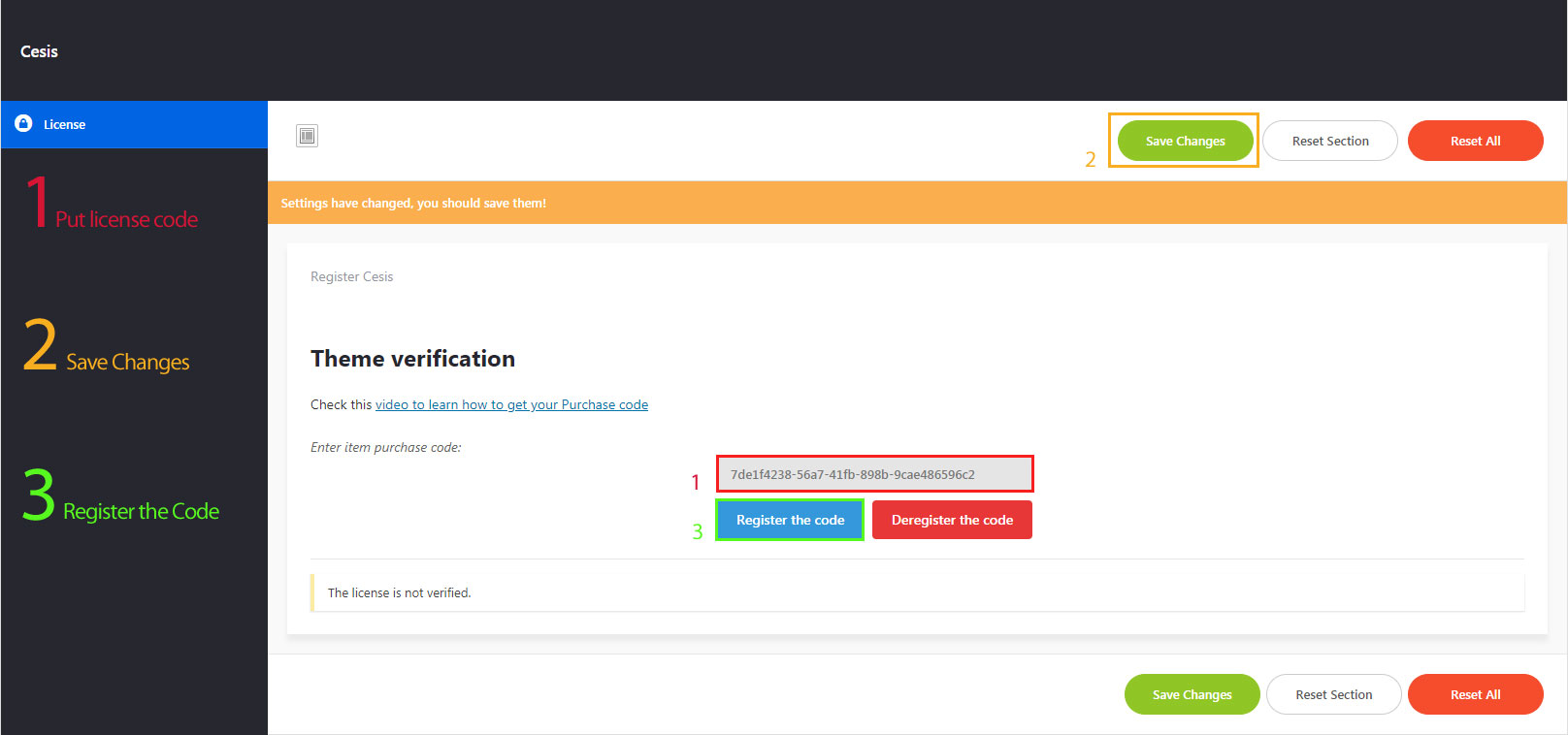 First, thanks for purchasing Cesis! Now to fully use Cesis you will need to activate the theme using the theme license.