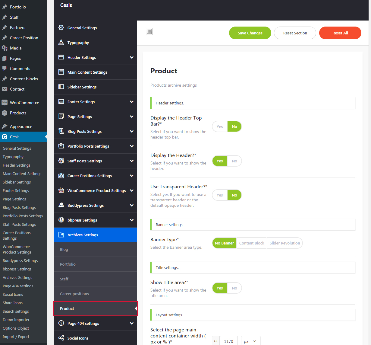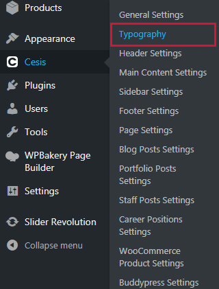 Step 2 - Click on Cesis to get to the Theme option panel.