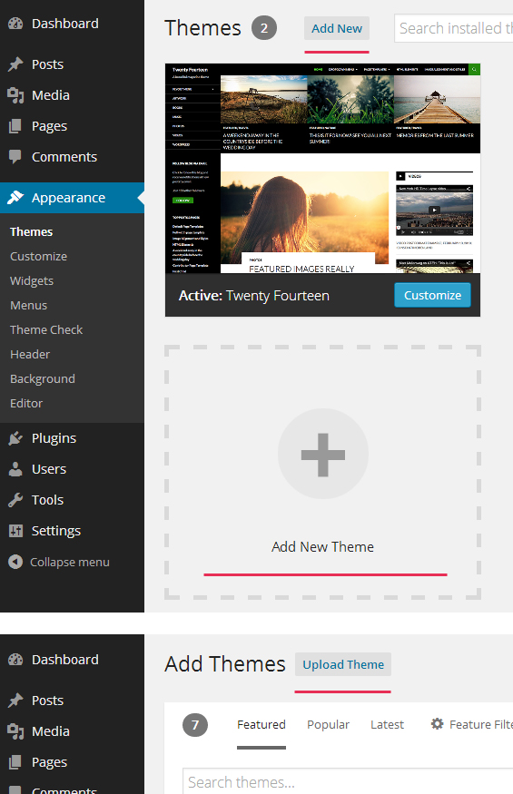 Step 2 - Go to Appearance > Themes. Click Add new button, located at the top of the screen or Add new theme ( see screenshots below ).